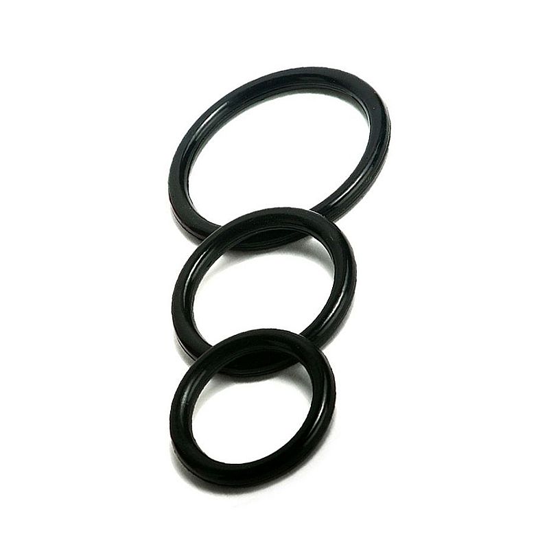 Kit com 3 Anel peniano de borracha preto liso e grosso, material flexível e resistente,anel grosso que melhora a compressão gerada por ele, tornando assi m mais efetivo.