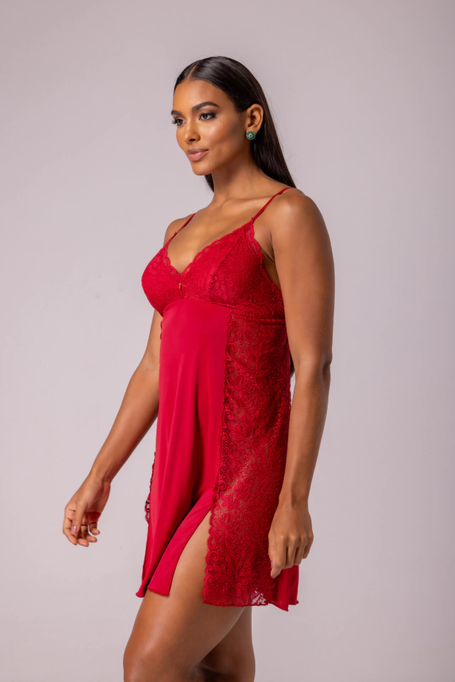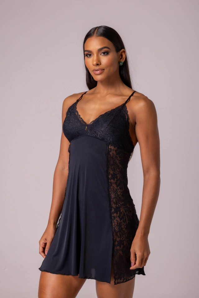 Escolha a Camisola Lateral Vazada em Liganete com Renda e eleve seus momentos com uma peça que une sofisticação e sensualidade!
