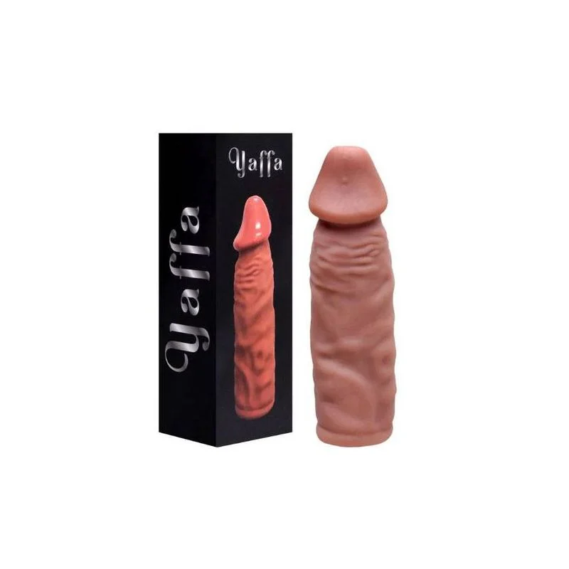 Capa Peniana com Extensor 13,5×3,6cm da Yaffa, feita em Cyber Skin macio e flexível com veias salientes, totalmente realístico!