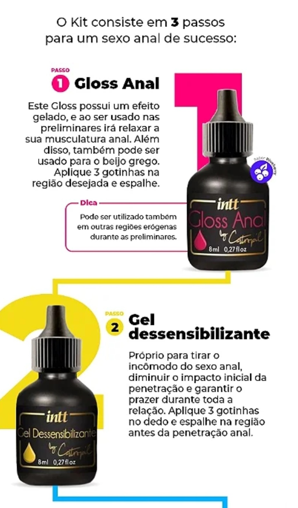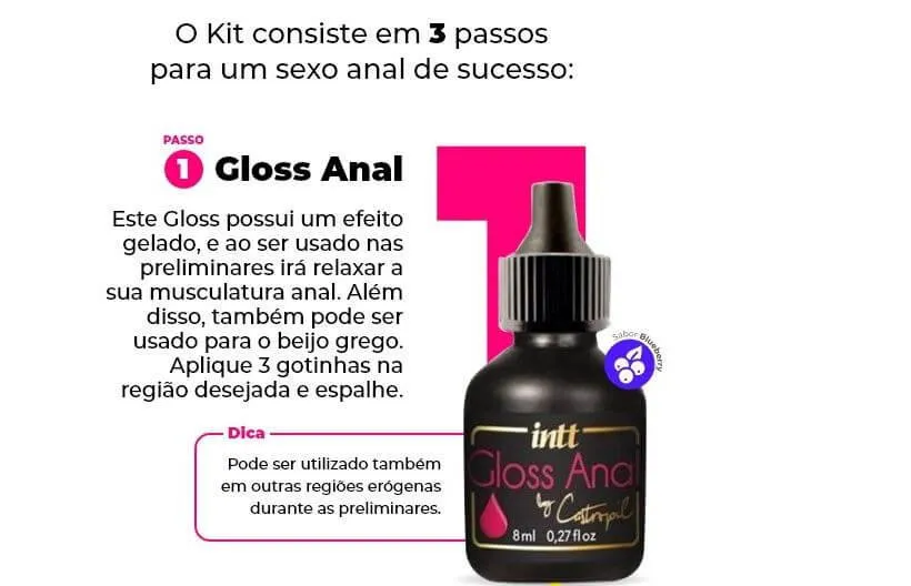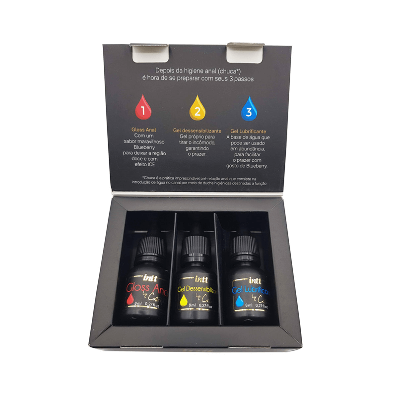KIT MEU PRIMEIRO ANAL INTT GLOSS ANAL 8ML + DESSENBILIZANTE 8ML + LUBRIFICANTE 8ML