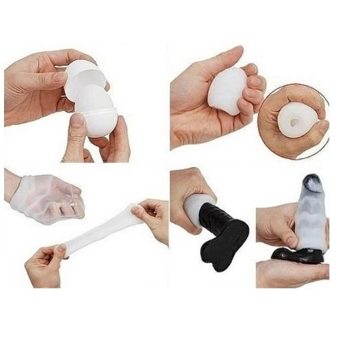 Depois de ?descascado?, o ovo contém um lubrificante no seu interior e é encaixado no pênis, como uma touca elástica, a peça pode ser esticada até a base do membro, e a partir daí a masturbação é feita com as mãos sobre ela. Perfeito para brincar sozinho ou a dois, já que a espessura garante sensação por dentro e por fora.