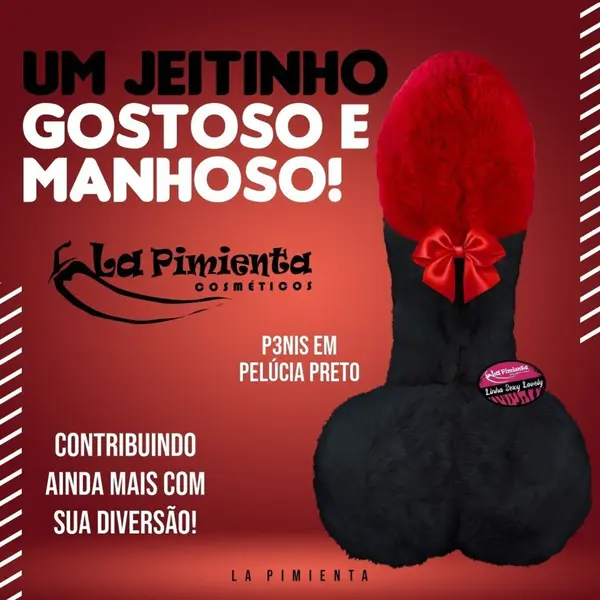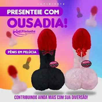 A La Pimienta traz essa pelúcia felpuda em formato de pênis, com toque macio e suave. Possui glande em tonalidade diferente e saco escrotal em tamanho arrojado para destacar o produto. Acompanha gravatinha em formato de laço. Perfeita para presentear seus amigos com mais diversão e descontração.