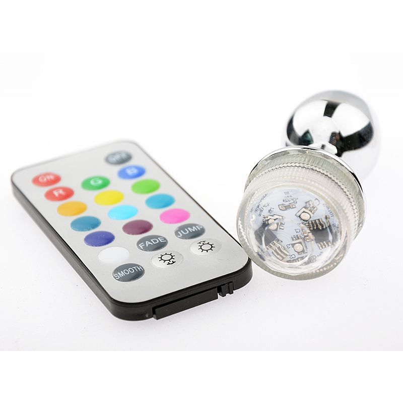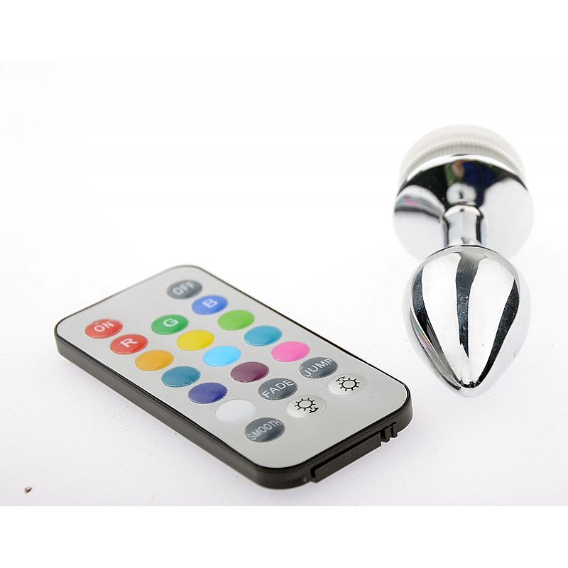 Plug Anal com led de 13 cores este é um acessório erótico com controle remoto, para pode proporcionar novas experiências na hora do prazer. Serve como estimulador anal em brincadeiras fetichistas, principalmente em jogos de dominação e submissão. É ideal para dilatação anal, pois sua espessura é diferente em todo seu comprimento.
