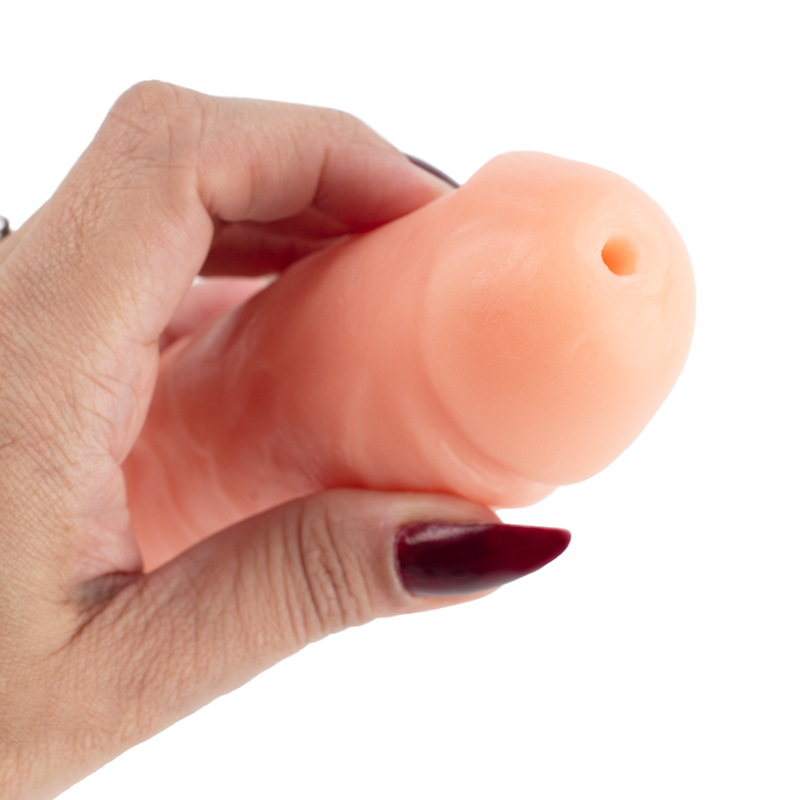 A pera para bombeamento da ejaculação mede 7,9 cm de comprimento por 4,2 cm de largura;
