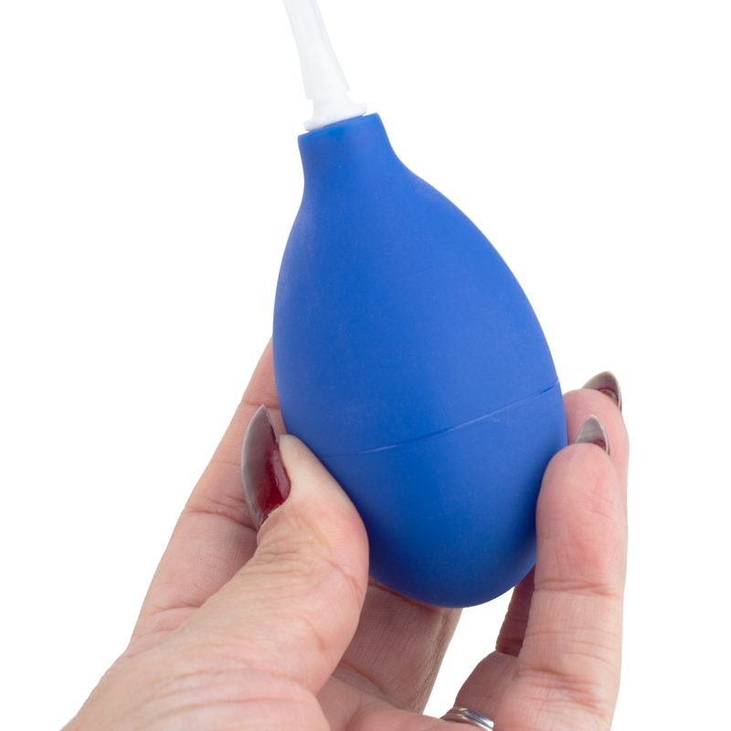 Penetre e pressione a bomba em formato de pera para fazer o jato;
