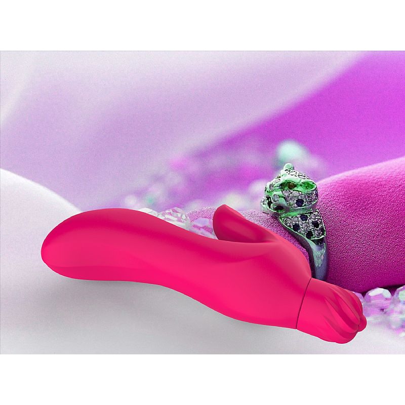 Feito em puro silicone atóxico. Tem a ponta levemente curvada que proporciona mais prazer durante seu uso, possui também um plug na lateral para estimulo do clitóris.
